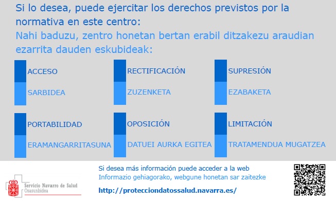 En relación con los datos personales recabados por el Departamento de Salud, usted puede ejercitar los siguientes derechos, mediante instancia general (enlace al registro general electrónico):