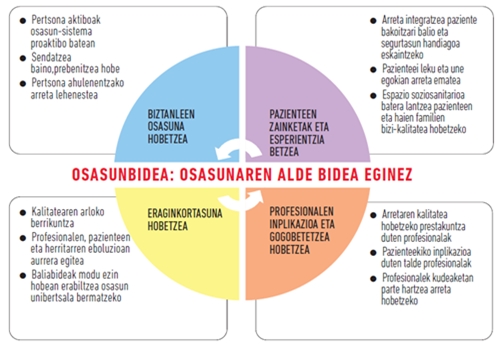 Aldaketak iraupen luzekoa behar du izan, baina mailaz mailakoa, atzerapenik eta arrisku handiko jauzirik gabe. Oinarrizko agiri honetan –eta hemen baino xehetasun handiagoz “Helburuak eta jarduerak” izenburukoan– Osasunbideak abiarazi beharreko jarduera ildoak proposatzen dira, erronka hauei aurre egiteko.